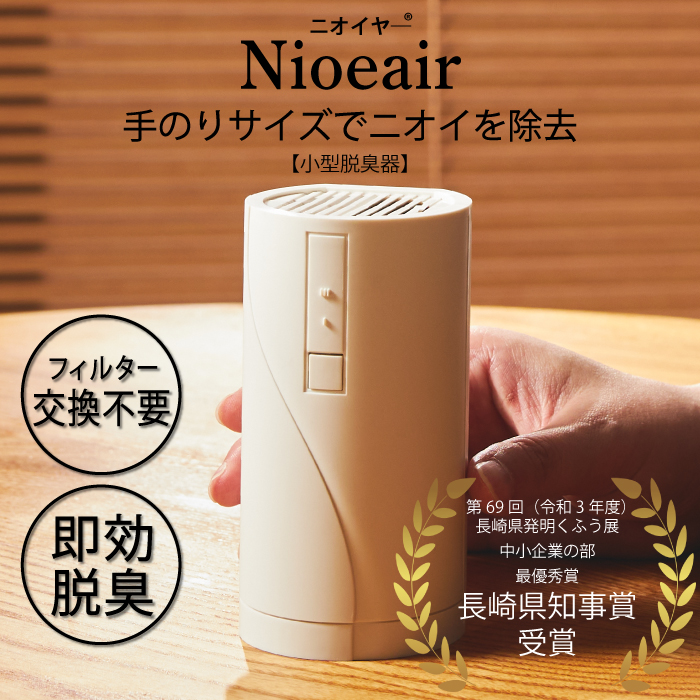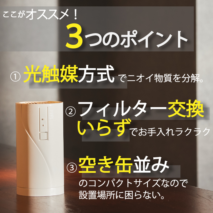 【ニオイヤー】は小さなボディのパワフル脱臭器! フィルター交換不要・コンセントにさすだけ! 光触媒方式でタバコ・ペット・トイレ・生ごみ臭もスッキリ!